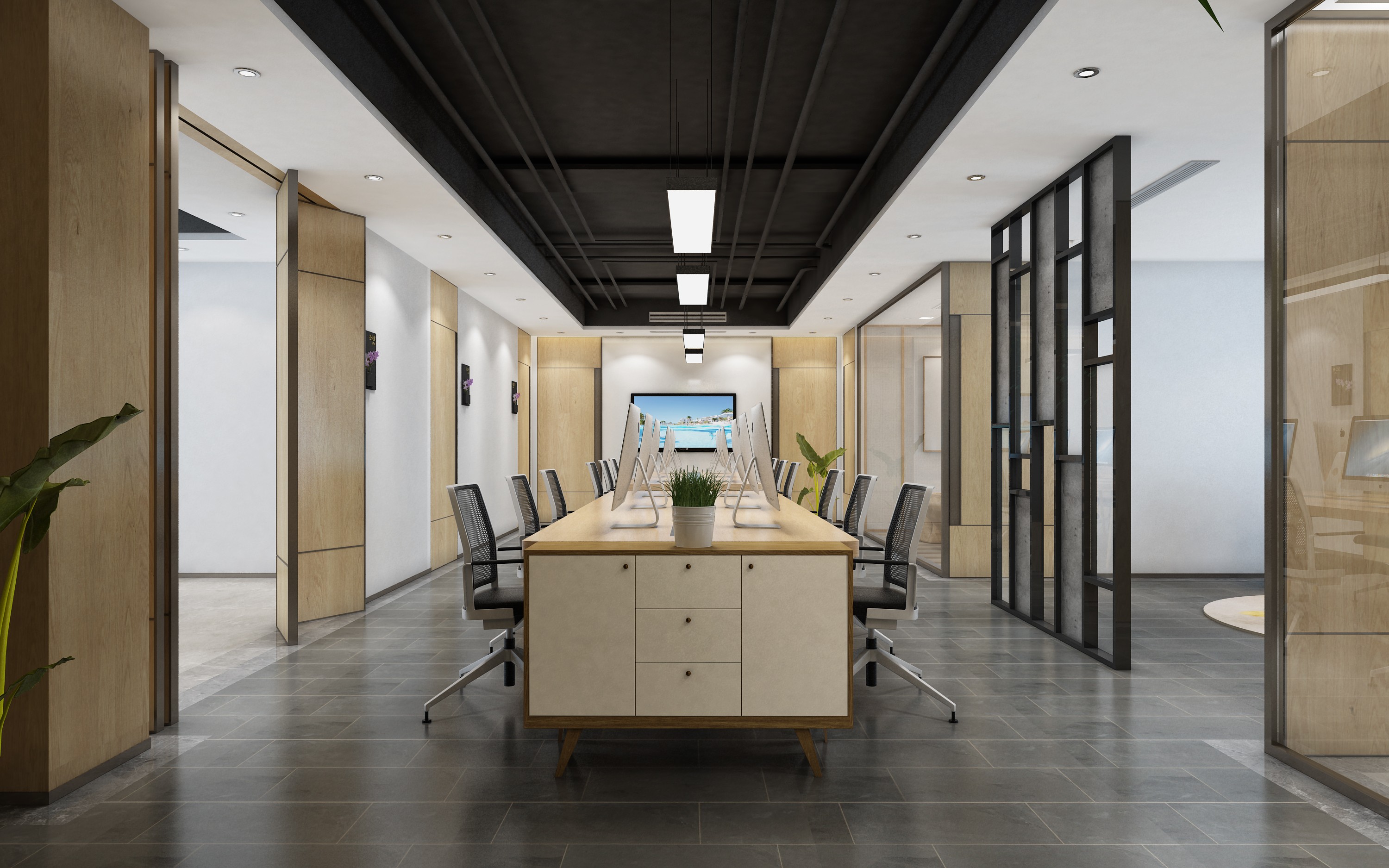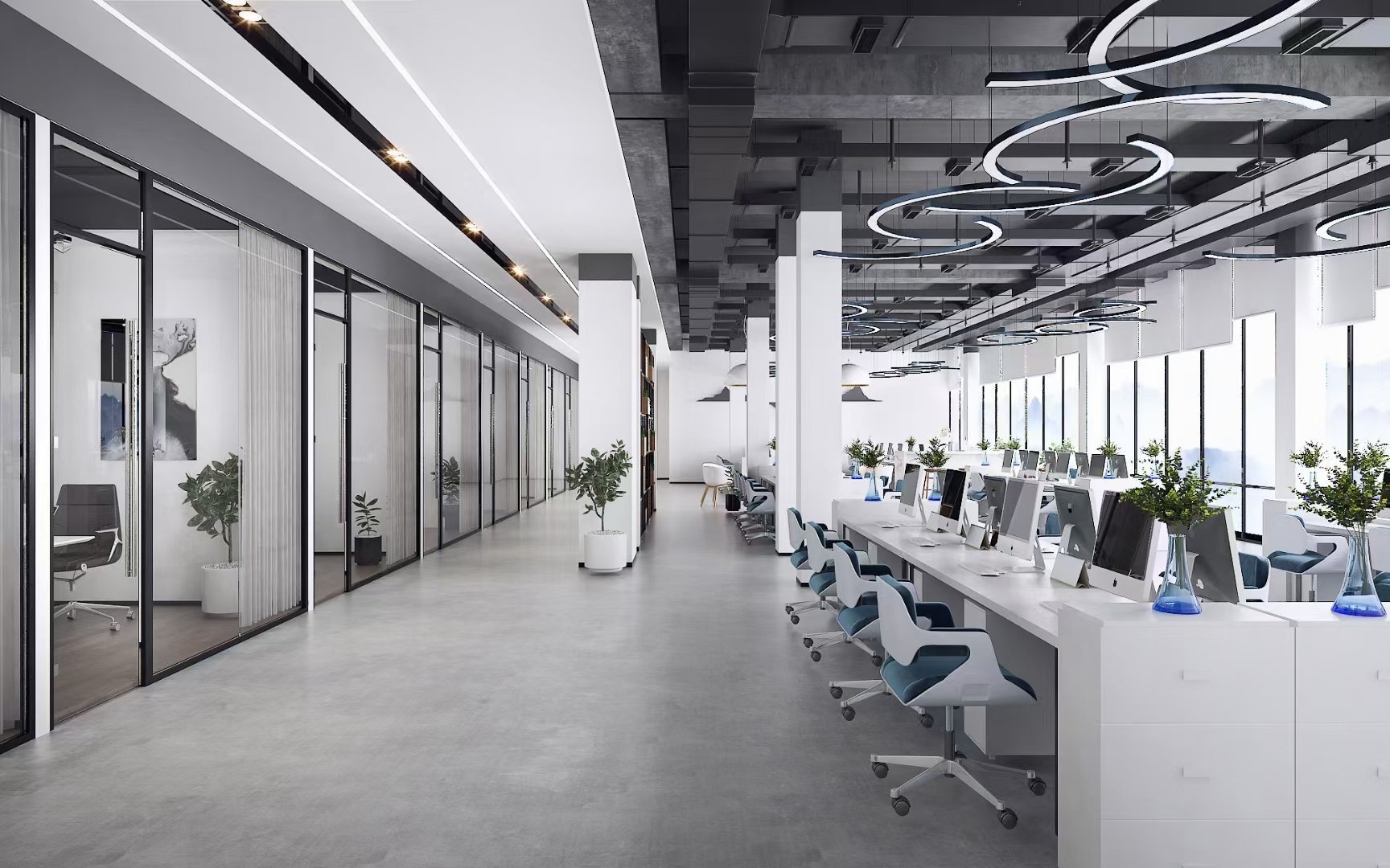 將墻面充分利用起來,例如掛上照片或藝術(shù)作品,或者在墻上安裝壁龕或書架。綠植不僅能美化環(huán)境,還能改善空氣質(zhì)量,有益于員工的健康和工作情緒。